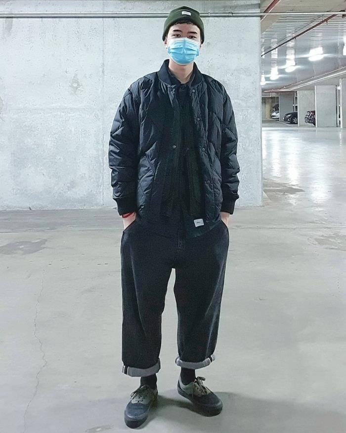 对于北方的男孩子,似乎就不怎么可以任性地“乱穿衣服”了,北方天气比较冷,因此也必须准备能够保暖的衣服,比如上面这种棉质夹克以及针织帽,都可以御寒,再搭配黑色牛仔裤,整体帅气且不失温暖。