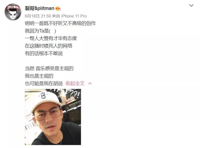 不过,最后苏醒也并没有把话说死,反而转口称音乐感受是主观的,他也是主观的表达,不认同的可以当他是胡说,加上没有说作者歌曲名字,可见苏醒求生欲之强。