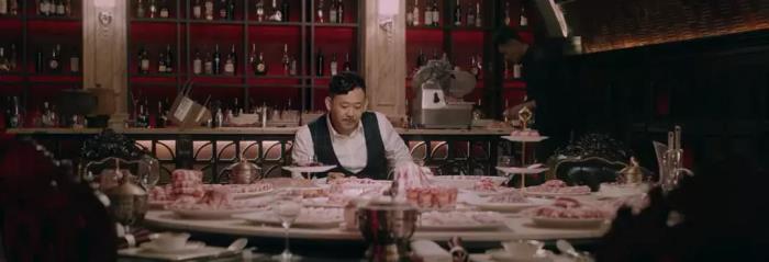 这场戏以吃饭作为载体,其实是在表达人性的交锋。每个人内心深处都有善与恶的交锋,如果掌控的好,那他就是一个正常人,如果失控那么每个人都可能会变成恶魔。