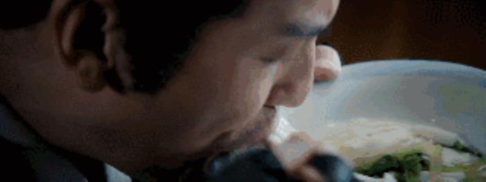 他饰演的锦衣卫裴纶在电影里一共吃了两次饭,这两次都非常能塑造人物“笑面虎”的性格特色。他不论是吃斋饭还是吃面条都发出声音,显得食物极为美味,人也相当放松。