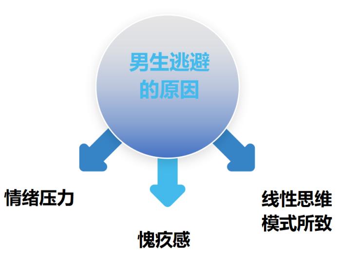 至于他为什么非要逃避呢?从男女思维差异性可以看出,男性是线性思维,如果负面情绪拉到顶峰,人的目的是怎么舒服就怎么来的话,那么逃避是最直接的达到目的的方式。逃避就像一条直线,从不爽到眼不见为净,一键到达自由巅峰。