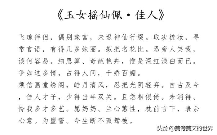不得不说,柳永长期混迹于风月场,对于女子的心思了解得十分透彻,这样的肉麻的情话也是信手拈来,这样的哄妻情词又有几个女子忍心拒绝。