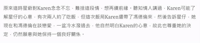 白露眉后来听知情人说起,莫文蔚可能当时猜到了周星驰的心思,所以有一次两人相约一起吃饭时,她特意带上了冯德伦一同前往,然后告诉周星驰她已经有男朋友了,给周星驰泼了一盆冷水。