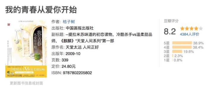 《我的青春从爱你开始》,作者:桔子树,豆瓣评分:8.2 分