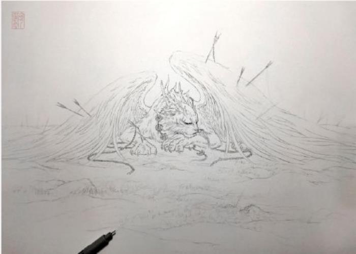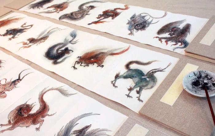 尝试用画笔把其中的异兽形象一个个绘制出来