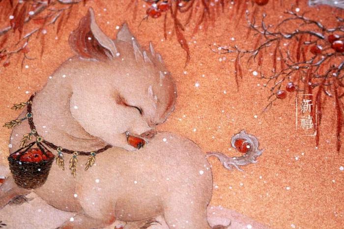用生褐,墨汁根据毛发结构染出身体和内测底色。