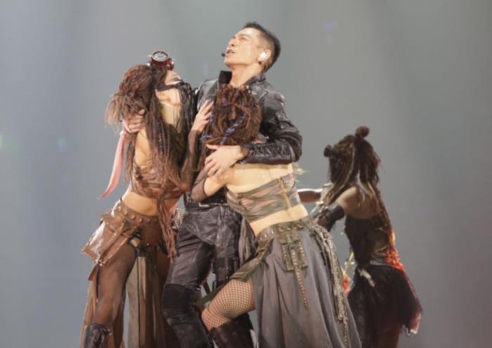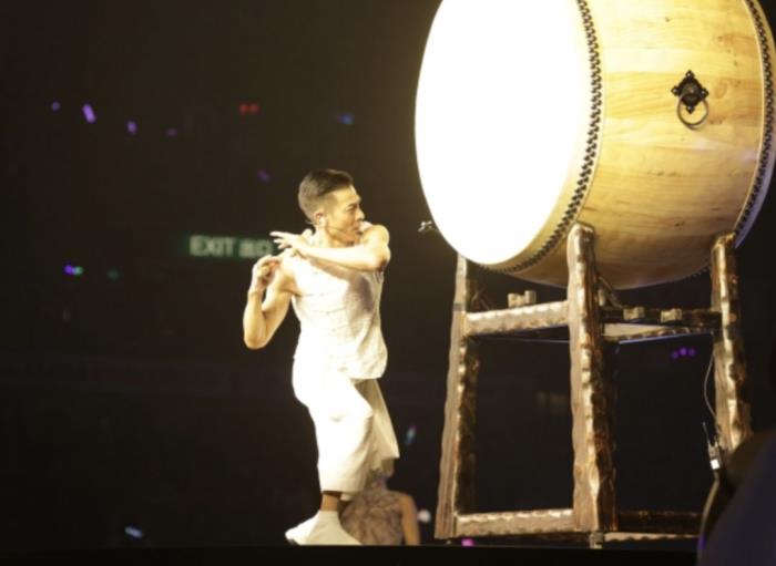 唱《中国人》时,刘德华还打起了大鼓,十分卖力。