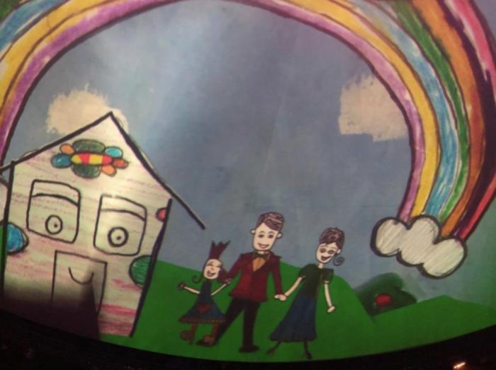 而刘向蕙也是多才多艺,演唱会大屏幕上还摆上了她所画的“一家三口”,十分温馨。
