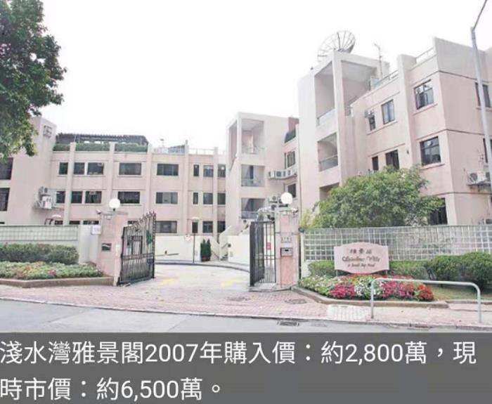 之前就有港媒报道称,郑伊健蒙嘉慧现在住在浅水湾雅景阁,2007年买入的时候2800万元港币(人民币约2364万元),后来房价上涨,如今已经达到6500万元港币(人民币约5488万元)。
