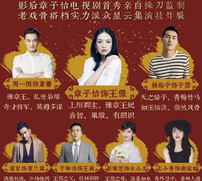 《上阳赋》由知名导演侯咏执导,根据寐语者的热销小说《帝王业》改编。除了章子怡首次涉足小荧幕,周一围、杨佑宁、袁弘、赵雅芝、惠英红等实力派演员也会加盟。