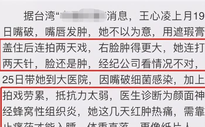 其实王心凌整容是迫于无奈。由于面部感染患上了蜂窝性组织炎,导致神经失调、面部坏死,组织僵硬,后期只能选择整容来修复。大家看到她现在面容僵硬的样子,其实是生病所致。