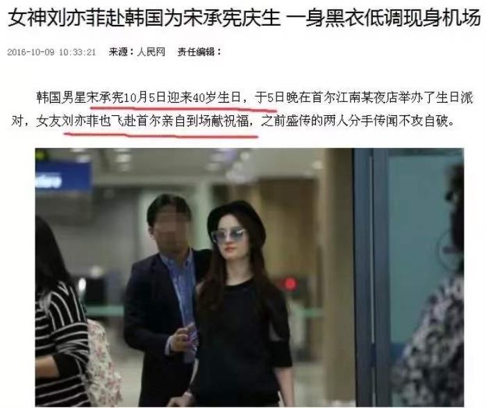 要知道,虽然交集不多,但是刘亦菲2016年在宋承宪生日时特别抵达韩国为其庆生,两人也被认定感情进入甜蜜状态。