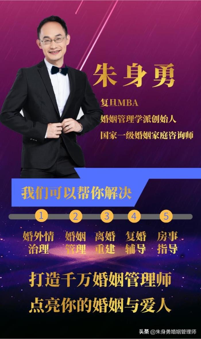 作者:朱身勇,复旦MBA,婚姻管理学派创始人,著有畅销书《婚外情治理》