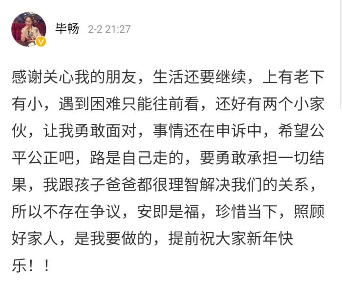 现在毕畅独自抚养着两个孩子,所幸他们都乖巧伶俐,和妈妈在一起拍视频时很配合。儿子已露过正脸,女儿还没有过。