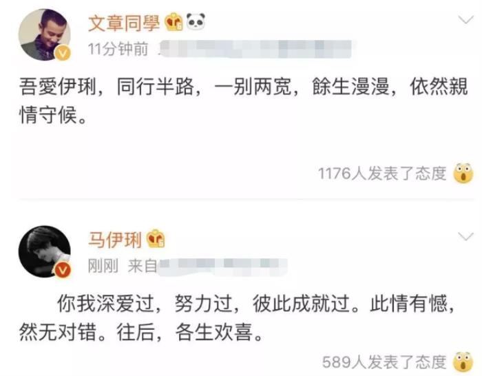 2019年7月28日,两人宣布离婚,相互祝好,体面告别。