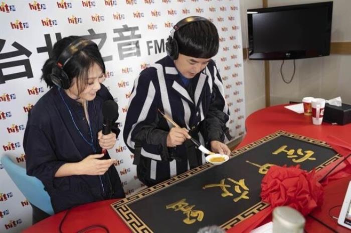 在第一期节目中她就邀请到了好友黄子佼来做客,对方还亲手写“空中佼刘”送给刘若英。