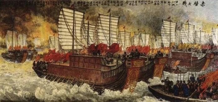 面对来势汹汹的曹操大军,东吴的一干大臣都显得惶恐不安,就连大臣张昭都劝说孙权投降曹操,何为?曹操手上有汉献帝,"挟天子以征四方,动以朝廷为辞",动不动就能用天子的名义征讨四方,这谁顶得住?而且如果东吴抵抗,在舆论上就处于下风,"今日拒之,事更不顺"。而且曹操号称"雄兵百万"进犯东吴,孙权仅仅能拿出几万人对抗,"五万兵难卒合,已选三万人",东吴的氏族们并不看好孙权能够抵御曹操。但在鲁肃的据理力争和周瑜的信誓旦旦下,孙权最终同意和刘备结盟。很显然,曹操低估了东吴的水军和将领,在将船舟用铁索连起来后,黄盖诈降,用自身为诱饵献上火攻,曹军人马烧死和淹死的不计其数。