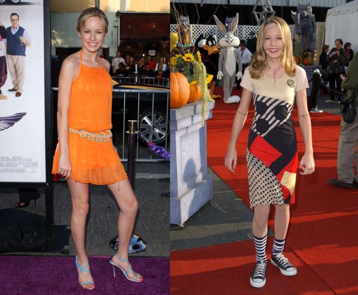 下图,身穿橘色短裙的是在2004年5月18日,布丽·拉尔森现身洛杉矶的电影首映,15岁的她驾驭高跟鞋就这么得心应手,看来布丽·拉尔森天生就具备明星的潜质。