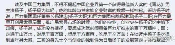 杨子是巨力集团一把手,他的年龄与他家族企业财富数额一样神秘。