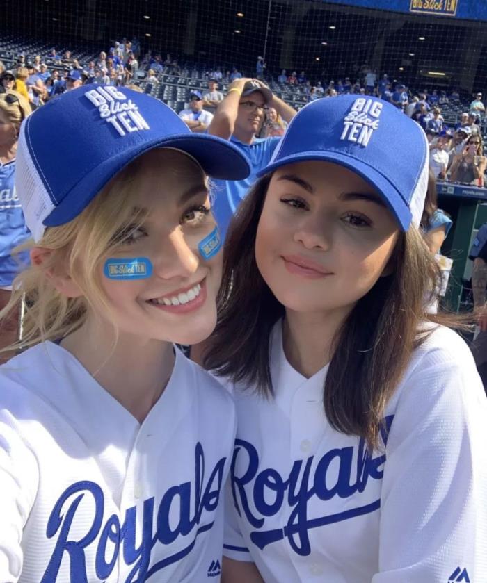 像Selina就是属于圆脸,带上一顶圆圆的毛线帽,更显得脸肉。