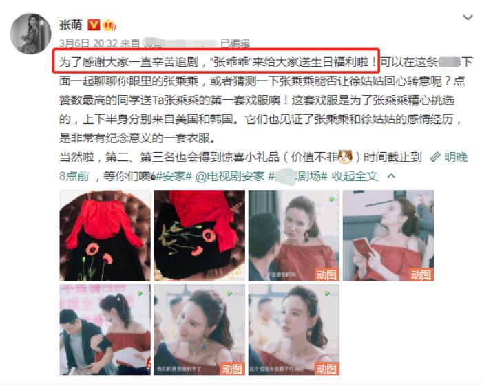 “张乘乘”张萌:带头骂角色,大方送戏服