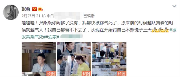 而后,张萌更是带头批评起了所演角色“张乘乘”,称角色“气人”,自己都看不下去,要“不照镜子三天”。