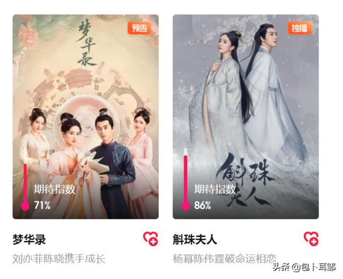 这部剧在TX视频独播,平台发起的调查,这部剧的期待值有86%。在它隔壁,却有一个强劲的竞争对手《梦华录》。