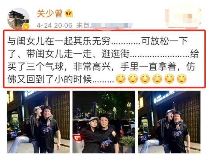 不过,近年来关少曾也越来越少的出现在影视剧中,多是陪着女儿一同拍戏,社交平台上也是各种和女儿的生活日常。