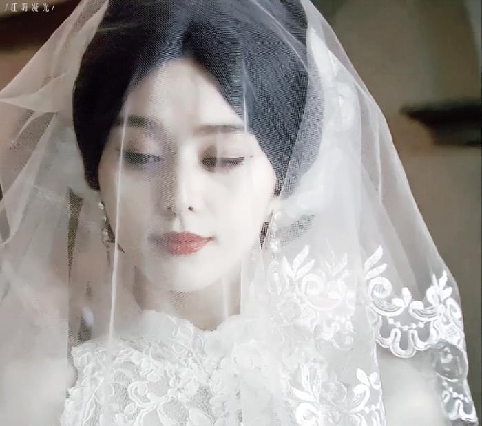 当年的范冰冰还不能称之为“范爷”,脸上还写着青涩与稚嫩,一袭婚纱上身,纤细曼妙,复古气息很有年代感,将范冰冰衬托的优雅又贵气。