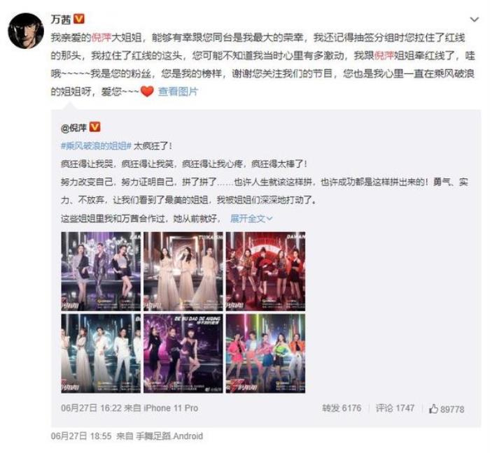 最近爆红的综艺节目《乘风破浪的姐姐》一经播出便圈粉无数,不仅吸引了很多网友们的关注,就连娱乐圈里的大明星们也纷纷被节目吸引,公开在社交平台上表达了自己对节目的喜爱之情。