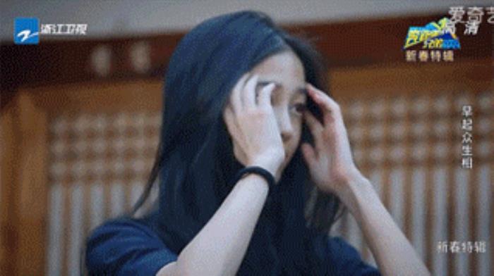 某一期的跑男,Angelababy和成员们一起在屋里敷面膜,当时把面膜拿下来,就是妥妥的素颜,刚敷完面膜看起来皮肤很好,非常漂亮。
