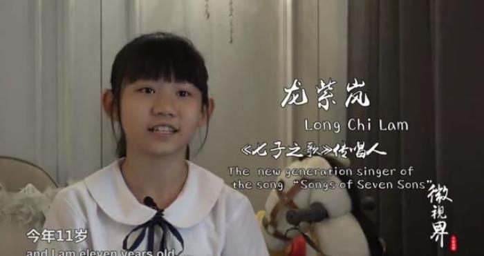 “我小时候就听过容韵琳姐姐演唱的版本,觉得特别好,没想到自己能成为传唱人”,龙紫岚已在2019年江苏卫视跨年晚会、《开学第一课》等多个节目演唱《七子之歌》,赢得多方赞誉。