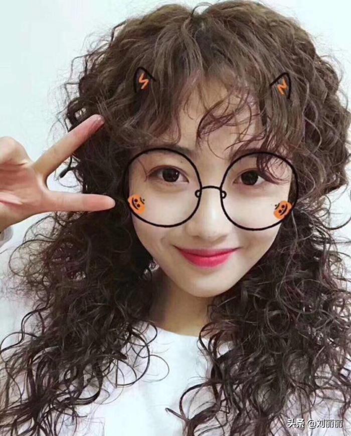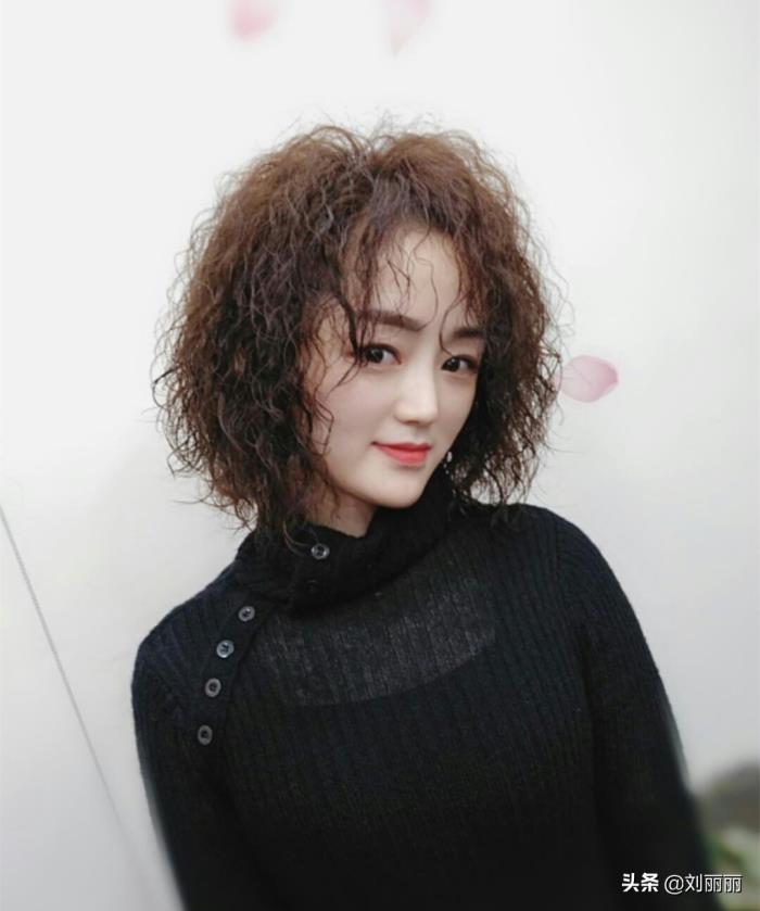 小波纹的满头卷自身就带着一种很洋气的感觉 ,蓬蓬的造型很修饰五官 。