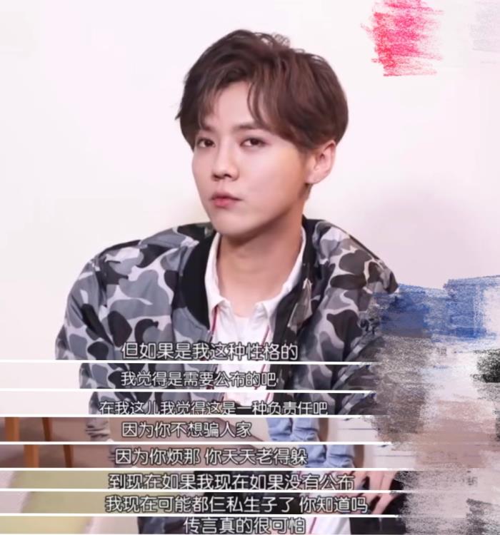 但鹿晗柔弱的外表下却藏着一颗强大的内心,南方周末在采访鹿晗时,他打趣道:"这是一种负责任,不想骗人家,而且传言很可怕,如果我现在不公布,我现在可能已经有3个私生子了"。