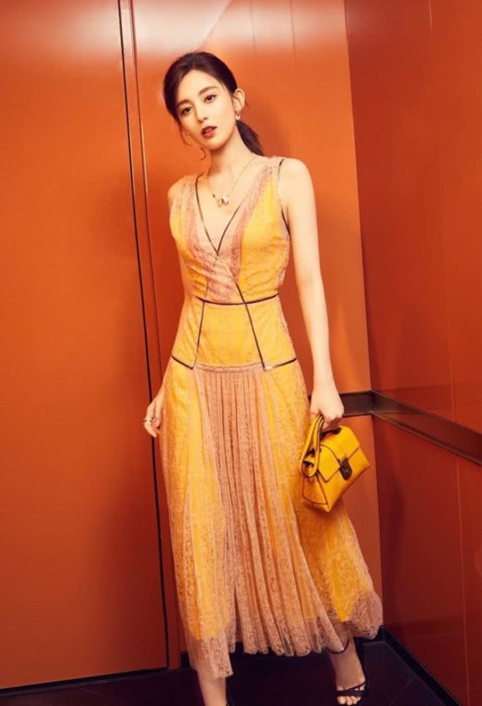 当然今年全网最火的淡黄色的长裙,古力娜扎也是驾驭的非常完美,这件波西米亚风的淡黄色薄纱镂空蕾丝连衣裙,复古甜美又时髦,V领的设计将上半身的锁骨展现得一览无余,下面搭配一双黑色细高跟鞋,甜美性感又复古,就是妥妥的娜扎style,完全非常符合娜扎的气质。