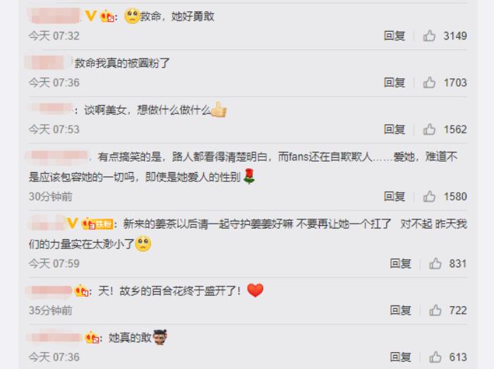 但是没想到,被骂了一天的姜贞羽在发文认爱后,反而让不少吃瓜群众的态度开始反转,夸她勇敢的声音反而盖过了那些质疑她“偶像失格”的声音。