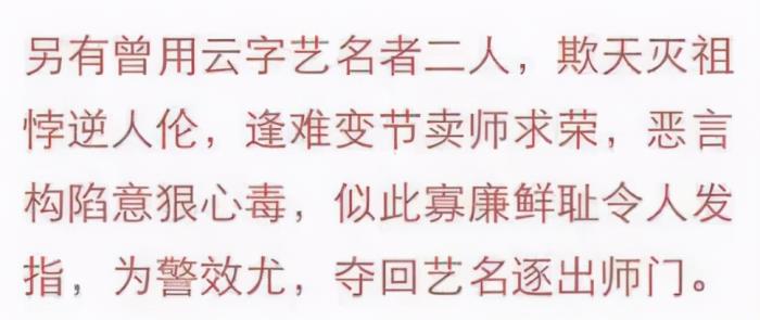 时间到了2016年,岳云鹏也早已成名。那一年,郭德纲在网上晒出德云社家谱,并表示:“曾用云字名者二人,欺天灭祖悖逆人伦,逢难变节卖师求荣,恶言构陷意狠心毒,似此寡廉鲜耻令人发指,为警效尤,夺回艺名逐出师门。”