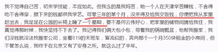 这段北漂的经历是郭德纲人生的最低谷,吃不饱饭交不起房租,他将自己熬到了没有一丝退路。后来王惠来京寻爱,她流着泪求郭德纲:“你跟我回天津吧,我不忍心让你在这里受苦。如果我父母再反对,我就把户口簿偷出来和你登记结婚!”