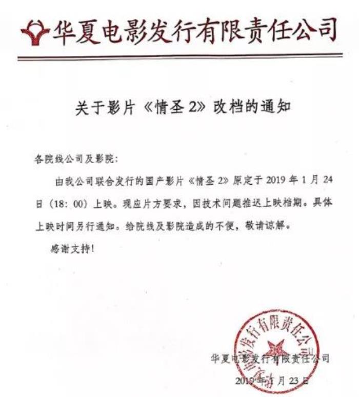 1月23日,原本提档至1月24日18点上映《情圣2》再度撤档,目前上映日期待定。此前《情圣2》曾定档春节上映,21日宣布提档至1月24日18点上映。这次撤档,不知道还有没有机会再上映。