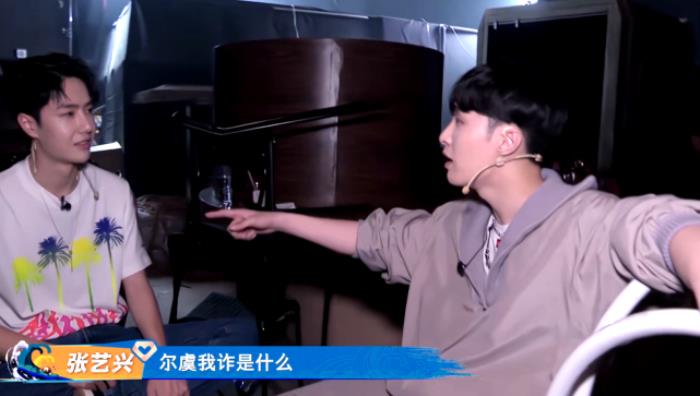 这次冷笑话PK其实是张艺兴起的头,当时两人正聊得开心,张艺兴突然问王一博:“尔虞我诈是什么?”王一博一脸茫然。紧接着,张艺兴一脸得意地揭晓答案:“尔虞我诈是三国!”