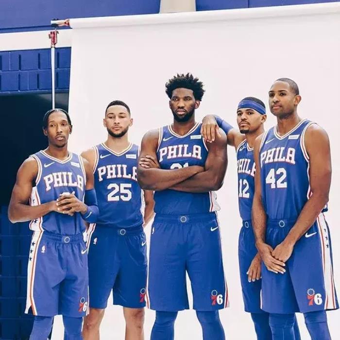 76人这边的画风有点不同:西蒙斯207cm,这身高打控球后卫,确实有点欺负人;打小前锋的托拜厄斯-哈里斯比西帝矮点,是202cm;恩比德是76人最高的213cm;今夏从凯尔特人来投的霍福德有206cm。