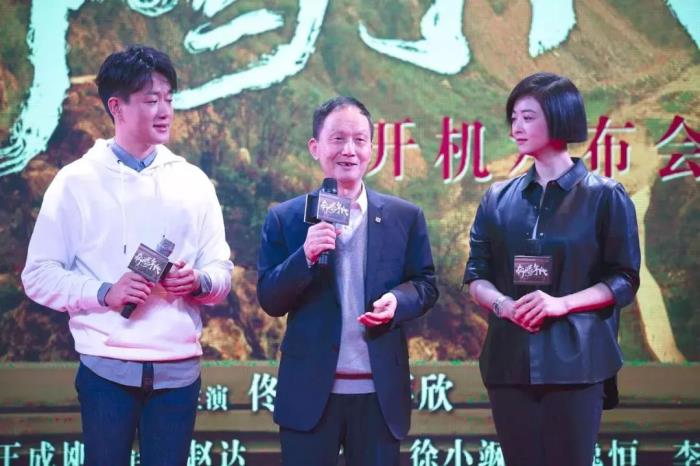《奔腾年代》开机发布会现场,众主创合影(图片来源:威克传媒公众号)