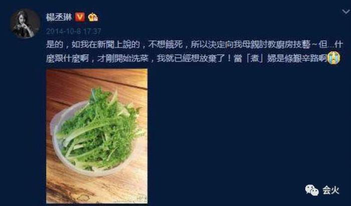 杨丞琳自称:"做煮妇是条艰辛路"。