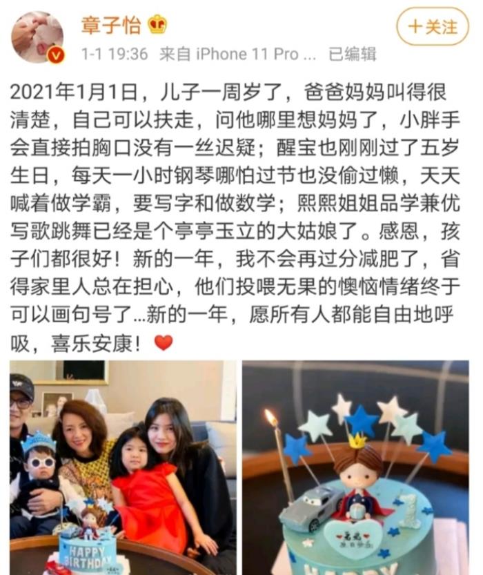 2021年元旦节这天,可谓是喜事连连,继谢娜官宣二胎后,章子怡也在个人社交平台上晒出全家福发文为小儿子庆一周岁生日,照片中一家五口温馨满满,十分有爱。