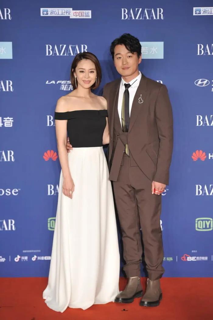 夫妻俩同框,感觉视线全在老婆关悦身上,她也真是敢穿,不过还好老公在旁边护驾呢,这款裙装是简约的款式,所以她的发型也是特别利落,长发全部盘了起来,精致大方,妆容也是服帖自然不油腻,感觉她不仅身材好,气场也还是挺强的,穿上这一身衣服,整个人的状态的确不错,有一种大女人的感觉。