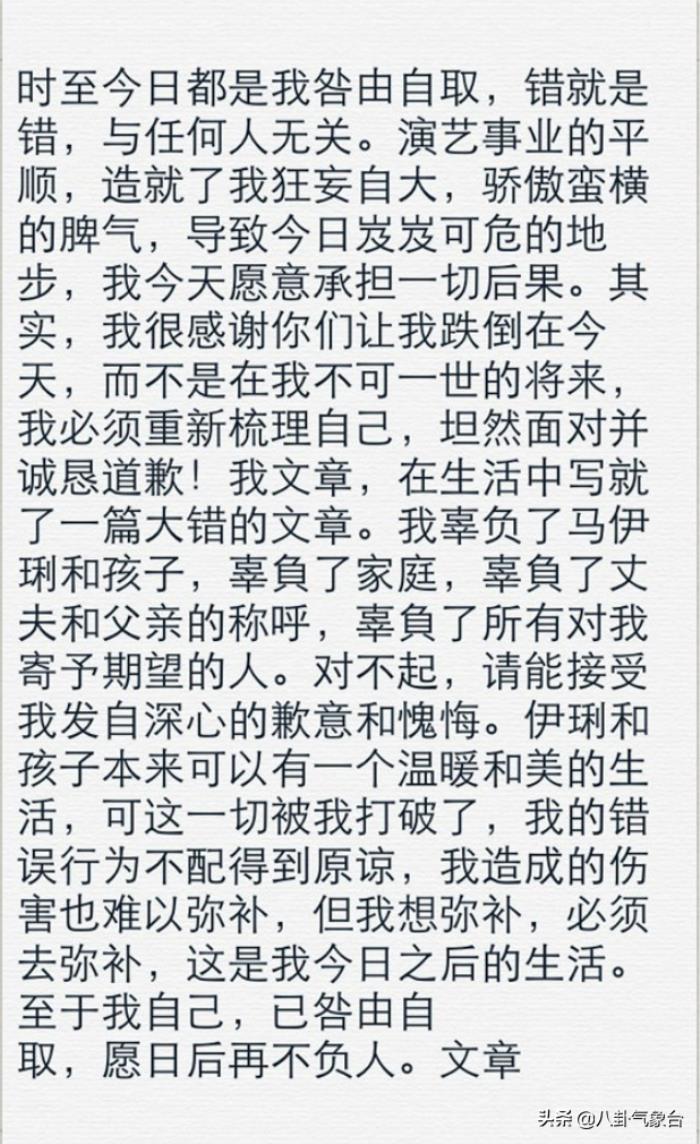 文章的道歉信,写得很简单,也很实在,不断地强调自己是咎由自取,可能在那时,文章已经意识到了这件事可能带来的改变。