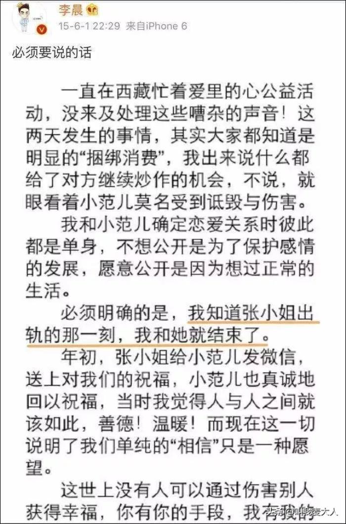 而李晨为了维护现女友,不惜发布长微博,直接下场“手撕”前女友。