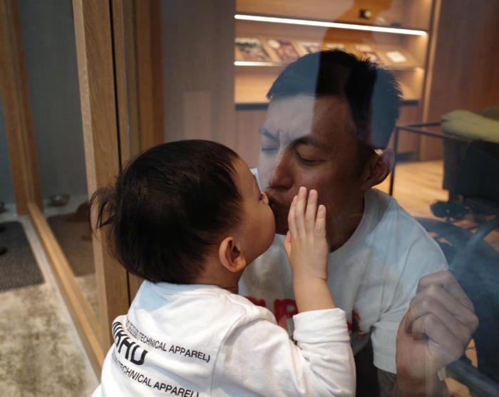 事实上这段时间余文乐和家人的生活都是隔着玻璃度过的,此前他的社交号上还发布了和儿子的相处日常。父子两人隔着玻璃站立,余文乐比划出各种搞笑的动作逗儿子开心。