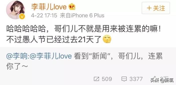 刚开始大家也不知道他们分手了,只是从朋友圈里传出一个空口爆料,说李响和李菲儿好上了。大家这才一拍大腿,发现完了,李响很久没有秀恩爱了!