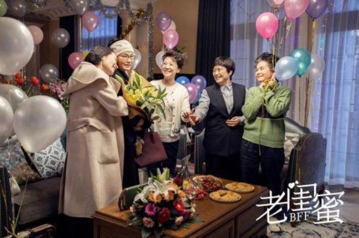 剧照中,时尚美丽的摩登老太艾琳(潘虹 饰)、活力四射的急诊科退休医师刘大夫(许娣 饰)、和蔼可亲的独居老人梅姨(王馥荔 饰)、随时少女心萌动的老太宋老师(宋晓英 饰)和豪爽又强势的家庭主妇红姐(吴冕 饰)大放异彩,这五位老闺蜜更多的展示了生活中温情款款的一面,生活气息浓郁的同时更加让人想到自己的老年生活。